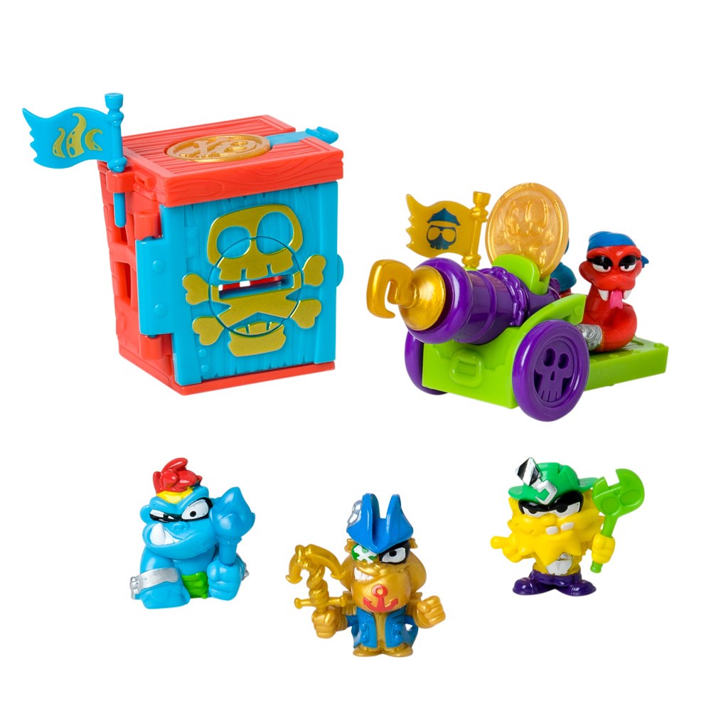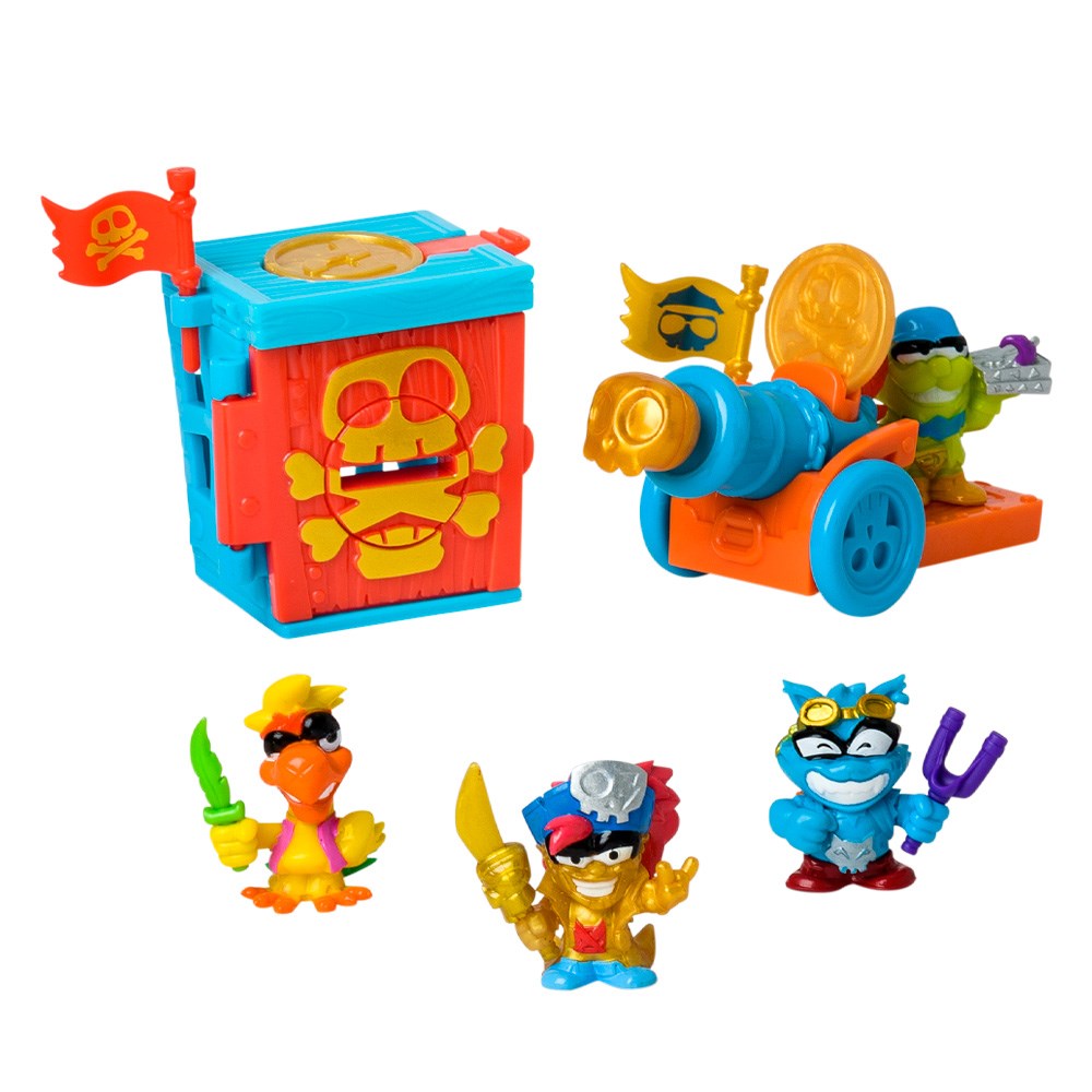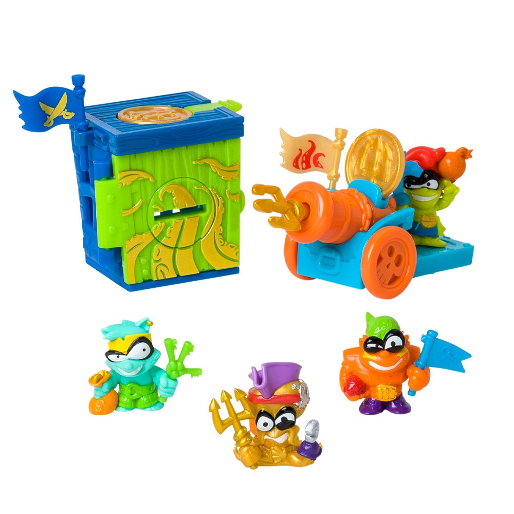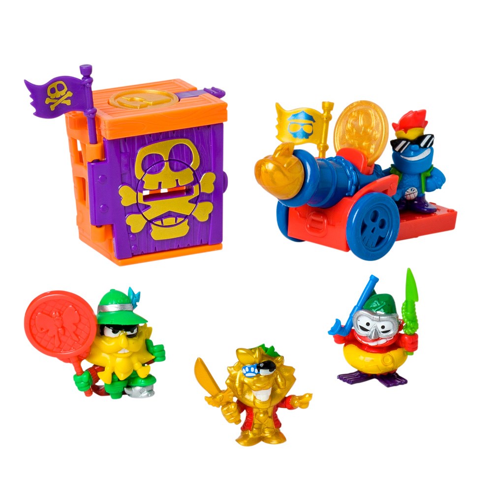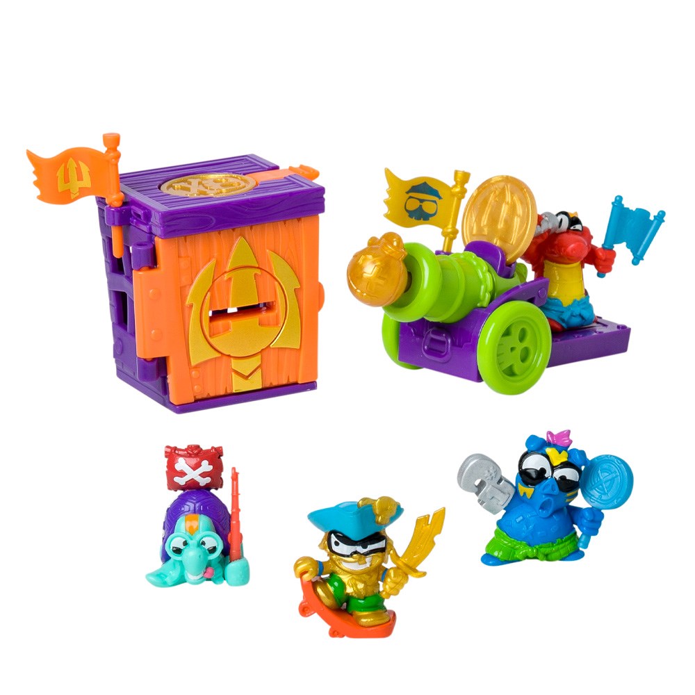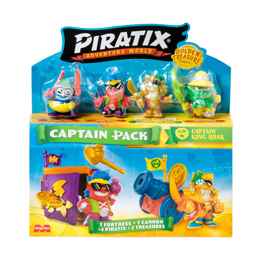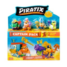 Ahoy, matey! Live your Piratix adventure on Shark Island with this new Captain Pack. It includes a fortress and a cannon, available only here! Discover the exclusive treasures to activate their powers and attacks. There are 6 different designs in multiple colors! Plus, you’ll get a Golden Captain and 3 other Piratix from the Golden Treasure series.