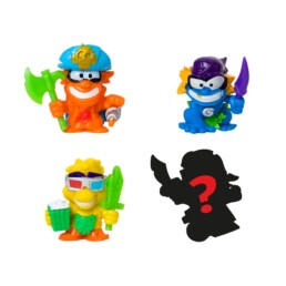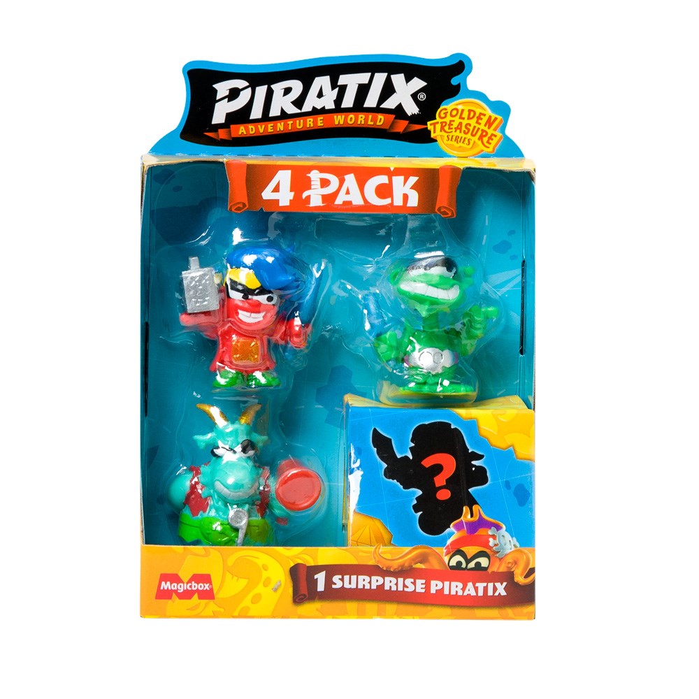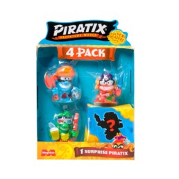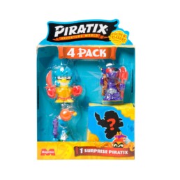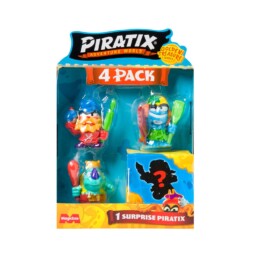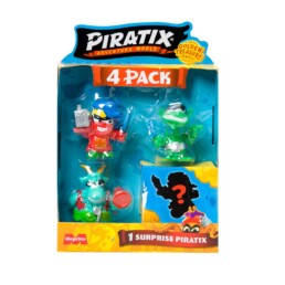 Ahoy, matey! Start or expand your Piratix collection with this pack. Get 4 figures with their 4 accessories. There are 6 different models in two colors. Will you find the ultra-rare Golden Beard? All aboard!