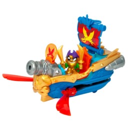 Join the Piratix fleet with the Skull Blade ship! This vessel hides a secret attack… Use the exclusive coin to activate it: two swords pop out on the sides to start the battle! Fire the projectile and go after the treasure!