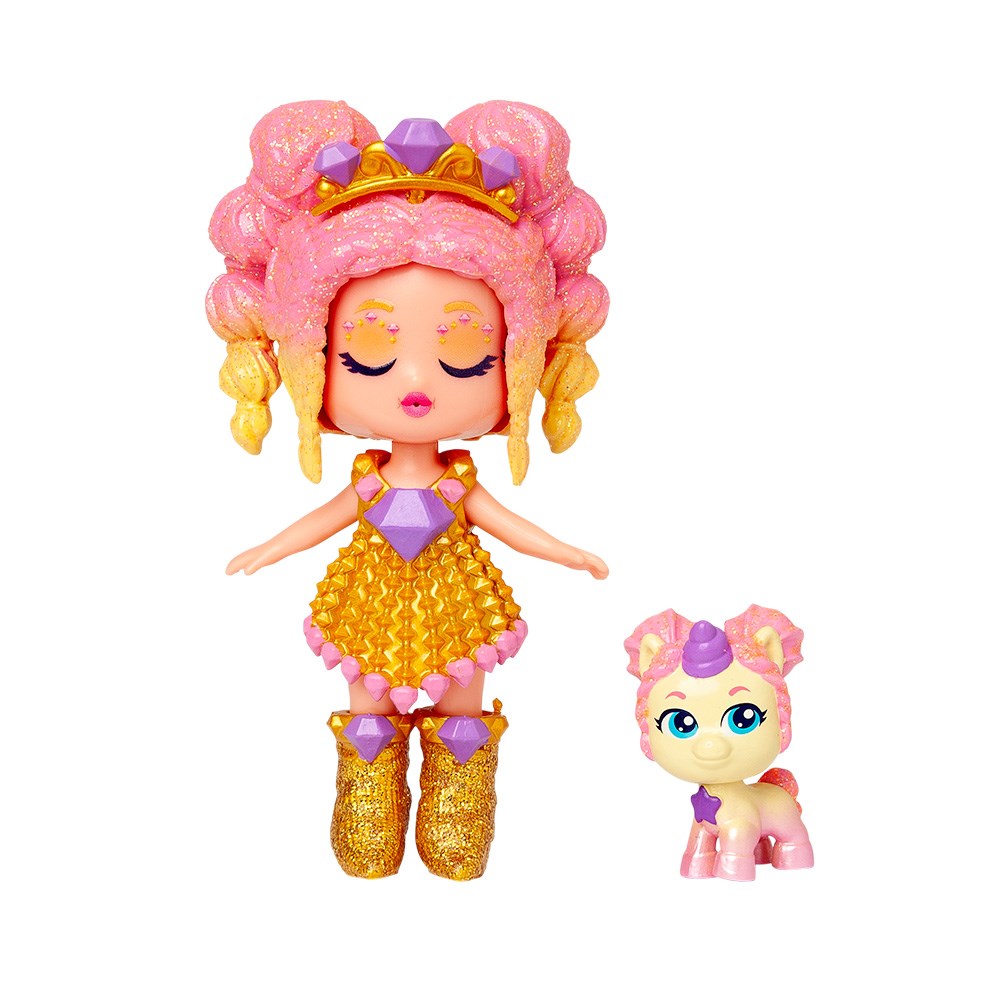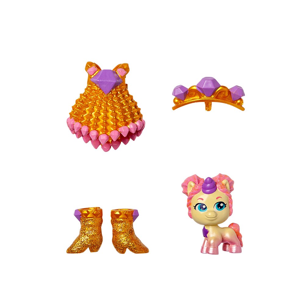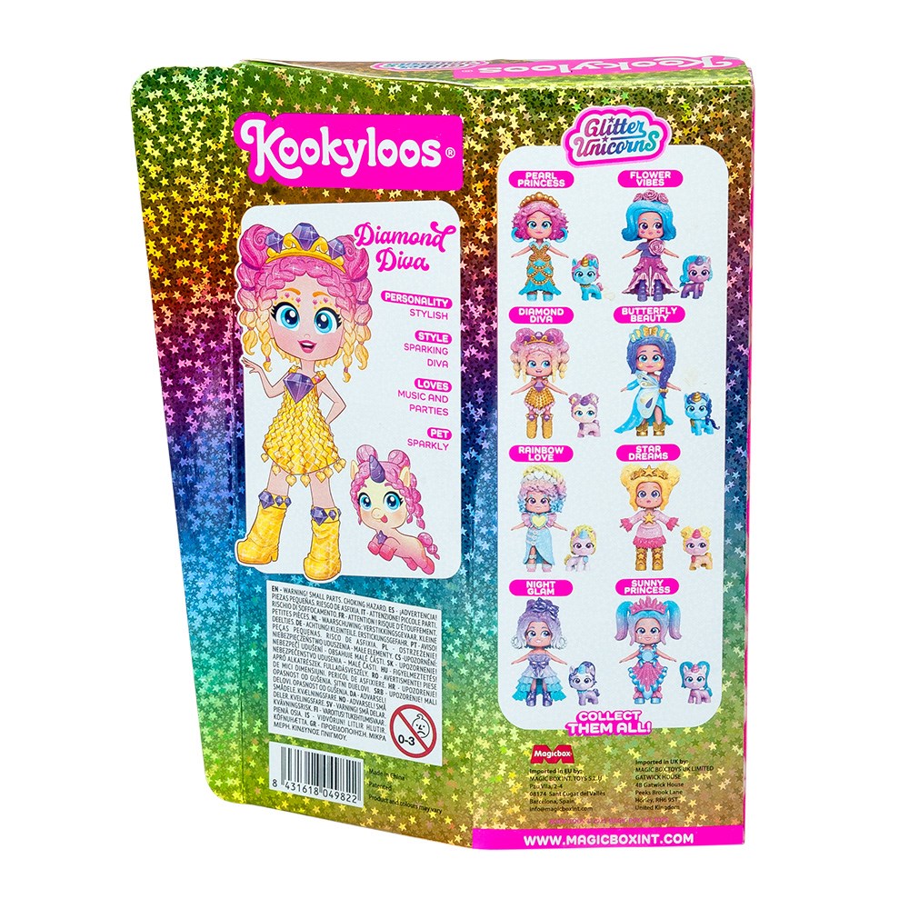 Kookyloos wracają z jeszcze większą dawką magii! Odkryj ich wspaniałe nowe stroje z brokatem, tiary i buciki, które możesz wymieniać między laleczkami! W kolekcji znajdziesz 8 nowych laleczek, każda z 3 minkami, które możesz zmieniać jednym kliknięciem! A to nie wszystko – każda z nich ma wyjątkowego towarzysza: jednorożca! Zanurz się w czarującym świecie Kookyloos i odkryj nową kolekcję Glitter Unicorns. Poczuj magię!