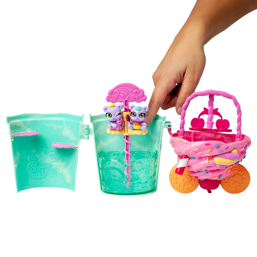 Sumérgete en la diversión del Smoothie Fun Park Bear Twins, un parque de aventuras con forma de smoothie donde la magia cobra vida. Dentro encontrarás a los ositos gemelos, Candy y Gummy, los Cherry Pets exclusivos de este parque, listos para descubrir sus secretos contigo.